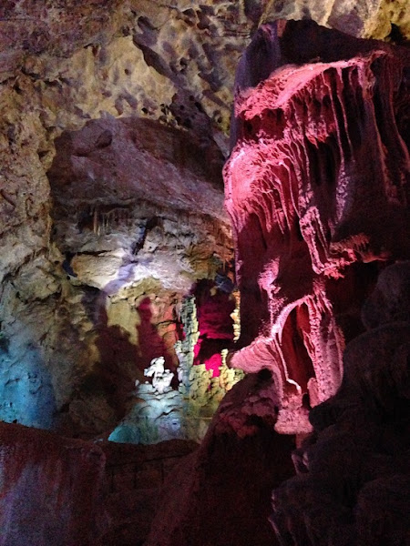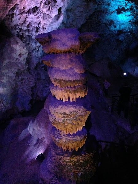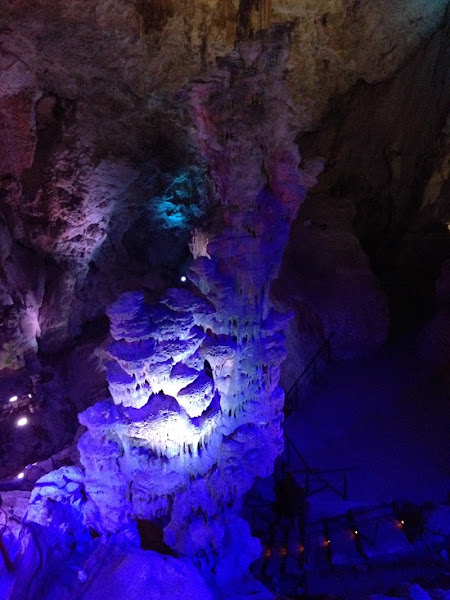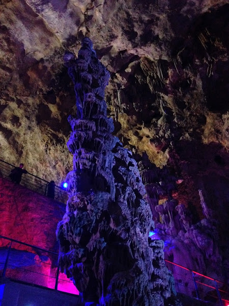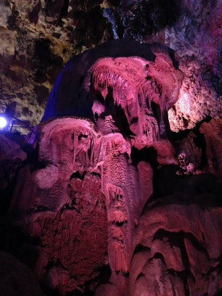 Y una vez dentro la visión es espectacular. Se trata de una formación de un millón y medio de años, que fue descubierta por los árabes en el siglo 8 d.C., según nos ha contado el guía, que está repleta de estalactitas y estalagmitas, algunas de las cuales han llegado a formar columnas y otras formas curiosas.