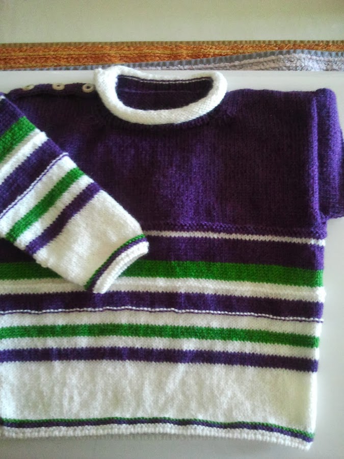 Mi ama suele decir que se duerme si no hace nada mientras ve la tele asi que ahora con las sobras de un par de madejas está "disfrazando" a uno de los muñecos de mi prima. (haré otra seccion con eso, que los nenucos están preciosos y las barriguitas también)