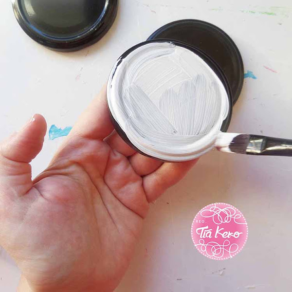 Primero vamos a pintar las tapas de blanco para poder pegar el papel decorado sobre un fondo más claro.
