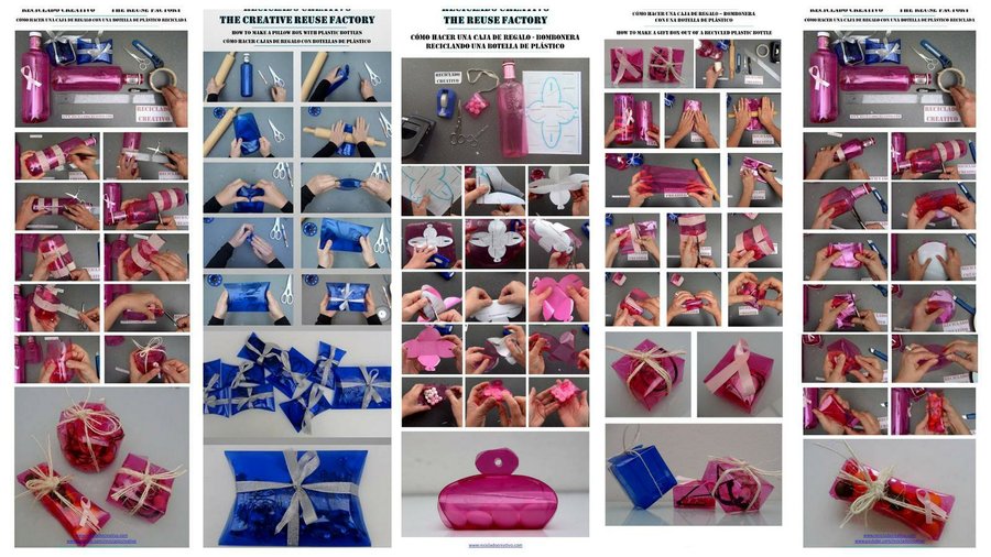 Con idénticas botellas, pero de diferentes colores, tenemos resultados divertidos, que pueden valer para un mismo evento, dando colorido Puedes encontrar tutoriales de todas estas cajas en el canal de YouTube, también hay multitud de esquemas explicativos que podrás encontrar en el blog, o en Pinterest