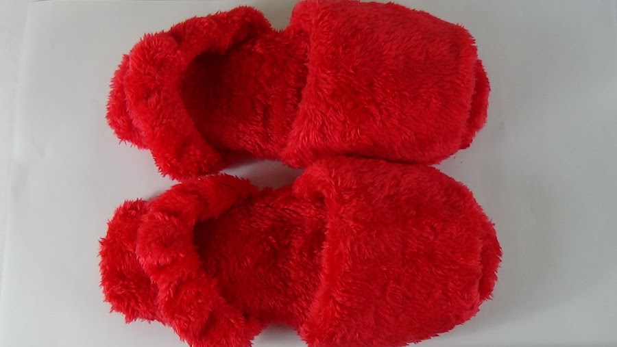 9.- Después de voltear la pantufla cosemos a mano la abertura y ya tenemos la pantufla.