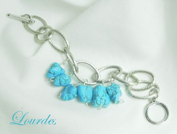 Pulsera de cadena metálica plateada con piedras turquesas