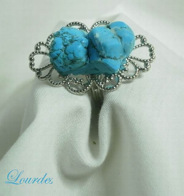 Anillo con piedras turquesas con base de filigrana