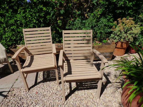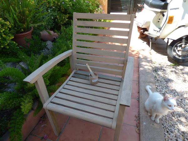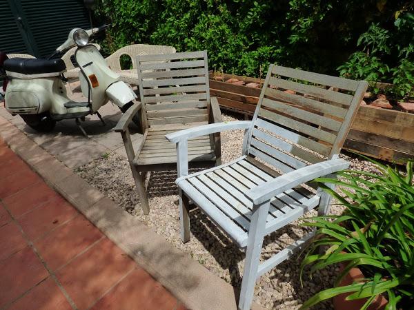 así quedaron las sillas y más que de un tono natural quedó mi espalda de la solana que me dió mientras pintaba