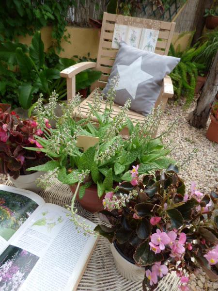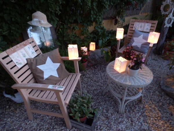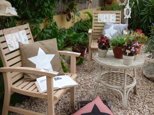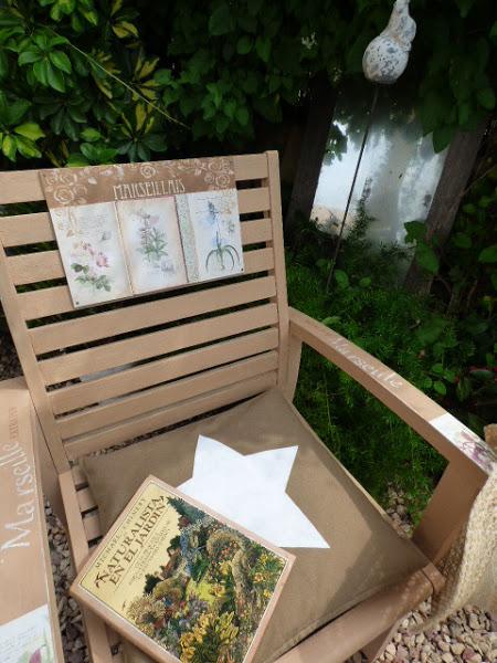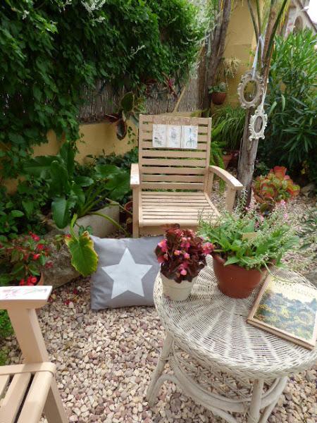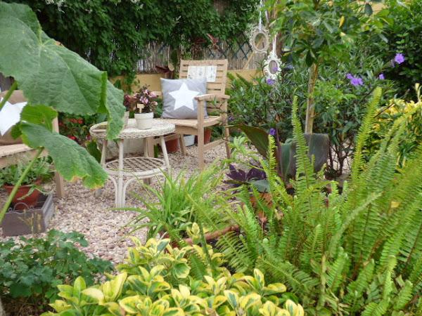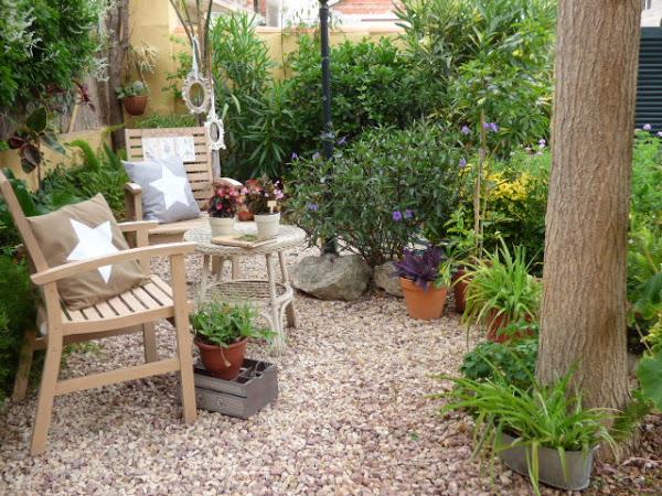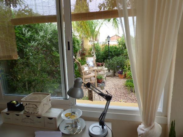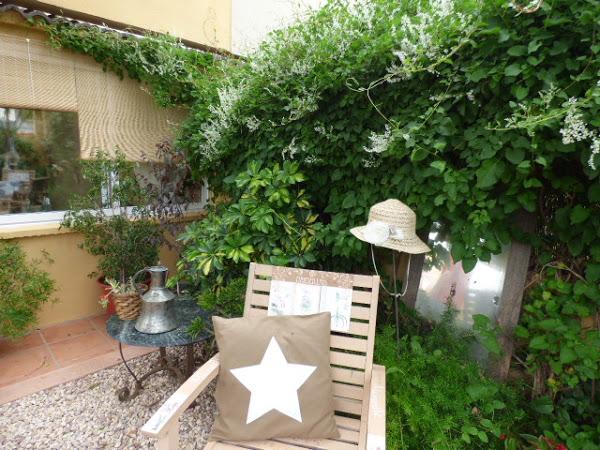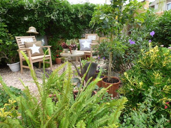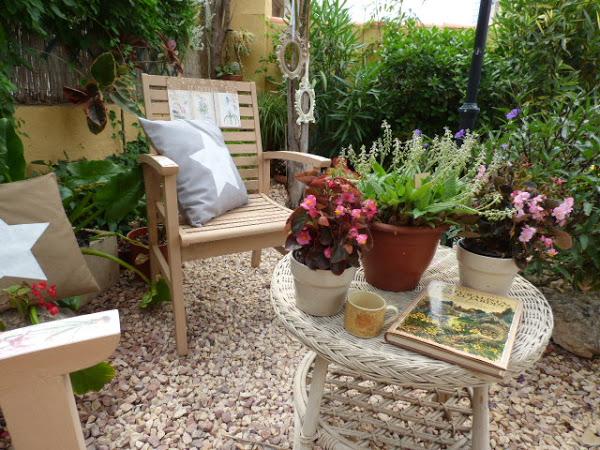 Y las he puesto delante mismo de mi sitio de trabajo.....un rincón dónde sentarse a leer un libro o simplemente a observar a los pájaros que se acercan a beber a la pila reciclada que tengo en ese rincón. No sé si será el sitio definitivo. Me chifla cambiar las cosas de sitio, cada dos por tres, así que iran errantes por todo el jardín.