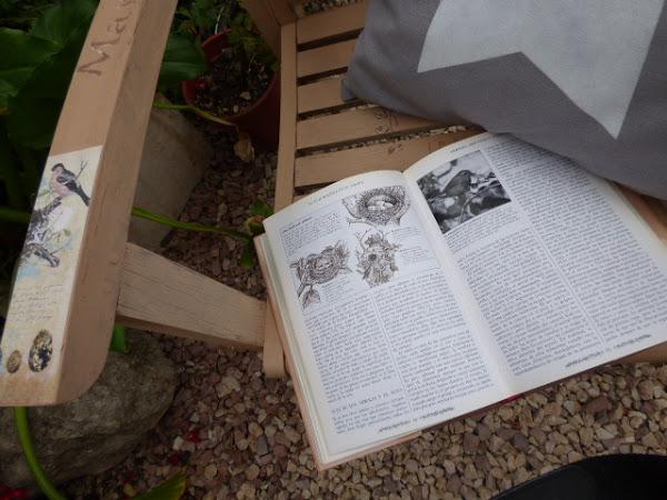 Después de comer ha empezado a tronar y he estrenado el rinconcito saliendome con el café y este precioso libro "El naturalista en el jardín". No es antiguo...sólo tiene unos añitos, es de 1986 exactamente. Le tengo mucho cariño...siempre lo he visto en casa de mis padres y ya hace años, cuando empecé con la afición a las plantas, mi madre me lo dió. Me gusta mucho ojearlo de vez en cuando, y hoy, oyendo venir la tormenta ha sido un gustazo .....