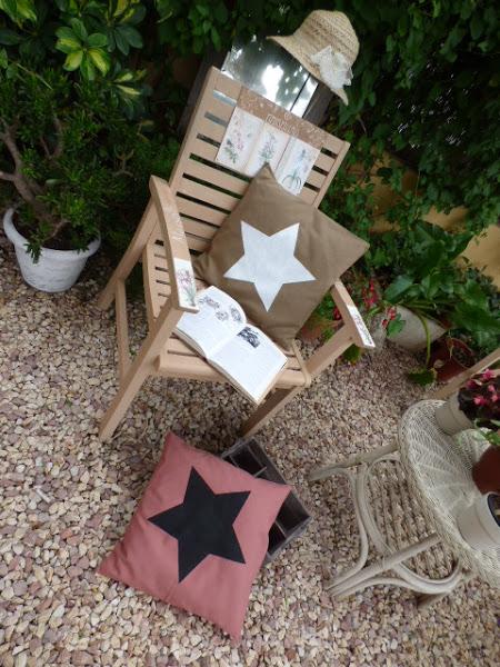 Ahh los almohadones de las estrellas los he estado haciendo también esta semana, con fundas que tenía sin pintar. Las hizo mi madre hace años y ahí estaban.....los llevaré a la DiyShow para decorar el stand y si se venden pues una cosa menos que traeré de vuelta¡ Mucha cosa quiero llevar, luego seguro que no cabe ni la mitad¡