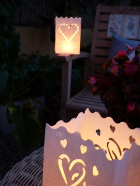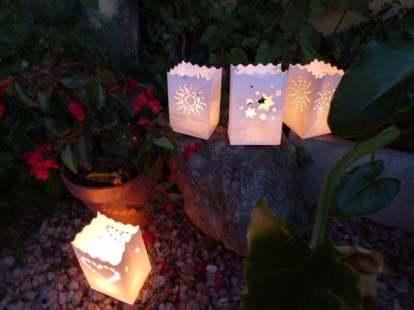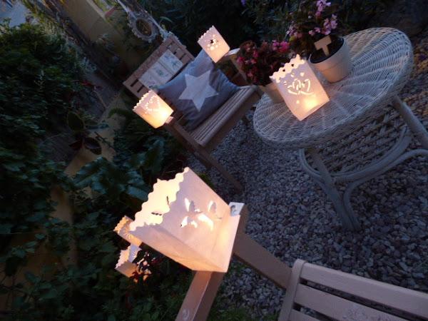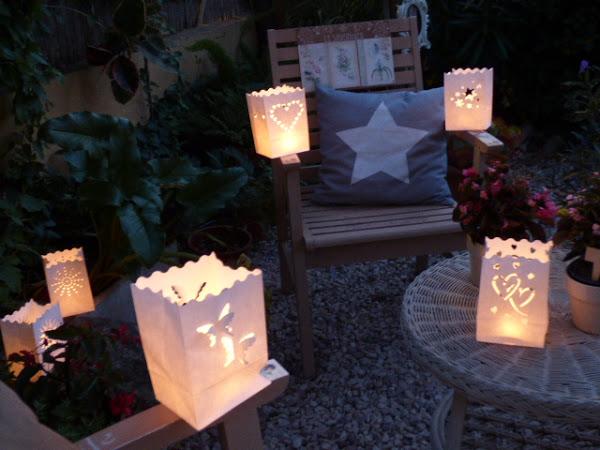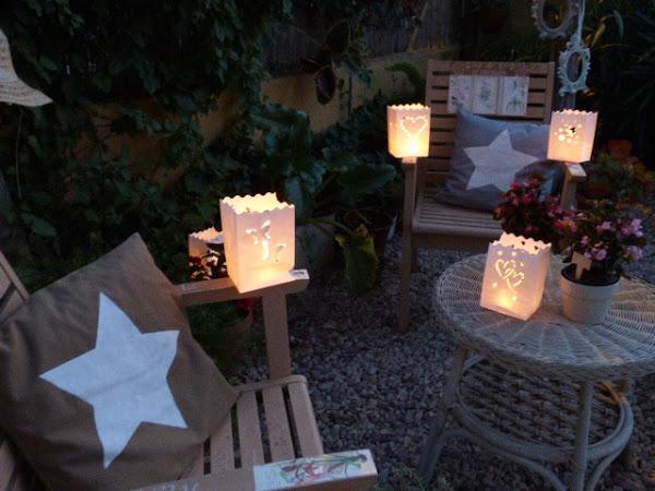 ¿A que queda preciosooo? Una cosa más a buscar en los asian shop....porque en uno los encontré, en la sección de cosas de cumpleaños de los niños...... un pack de 6 bolsitas por 1 euro¡¡ Le pones dentro una velita de las de té y queda así de bonito. En algún sitio he visto que en realidad se llenan de arena para que la velita quede incrustada y sea más seguro. Aquí en mi casa cuando me han visto trajinar con las bolsas de papel y las velas, ya pensaban que salíamos ardiendo todos¡