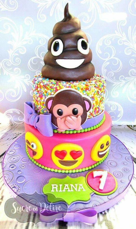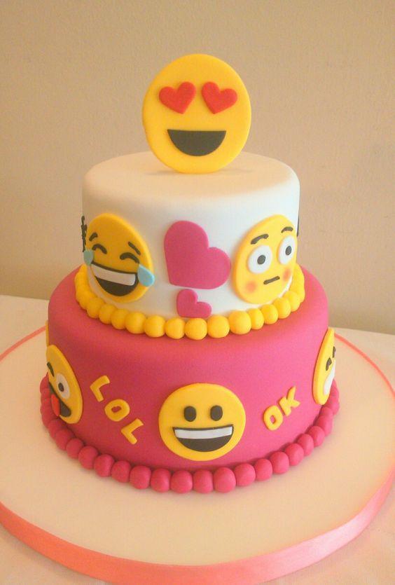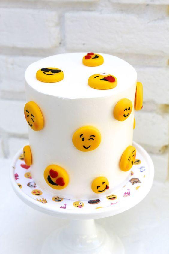 Como te comentaba antes, elegí las mejores tortas decoradas con Emojis para que te inspires en tu próxima fiesta. Son relativamente fáciles de realizar, ya que con una torta básica forrada en fondant tendrás casi todo hecho. Los emoticones se pueden hacer de pastillaje o galletas para las más laboriosas y con conocimientos de pastelería, y para las que no lo son tanto, podrán resolverlo con caritas de goma eva o papel impreso, corazones, estrellitas y moños. Pero todas van a poder hacerlo…