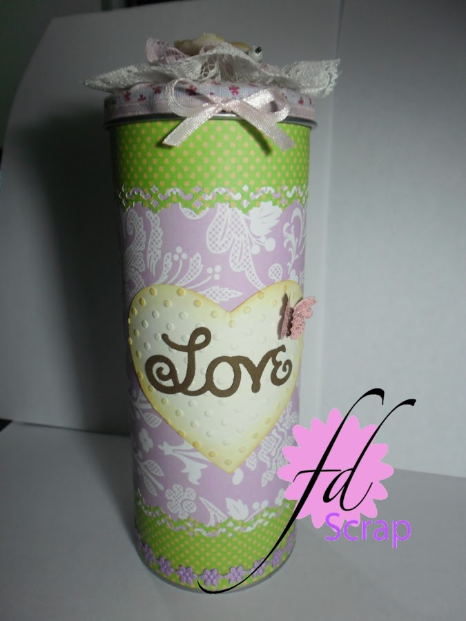 Después de mirar mucho he cogido una latita que tenía hace algunos meses y que estaba guardadita en un lugar especial ya que unas amigas le pusieron dentro una toallita bordada y me la regalaron (ellas saben de mi "hobby" por no decir adicción xD).