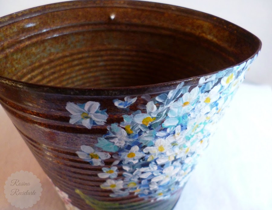 Como tengo la esperanza de que en por lo menos 6 meses pueda volver a lucir mis macetas en algún lugar decente del jardín,me tomé el tiempo para agregarle un plus al óxido natural.