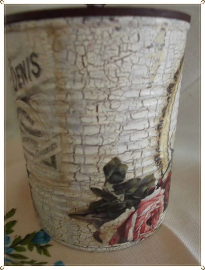 Aplicamos una capa de craquelador por toda la parte exterior de la lata , lo aplicamos en distintas direcciones, para que luego las grietas salgan también en distintas direcciones.