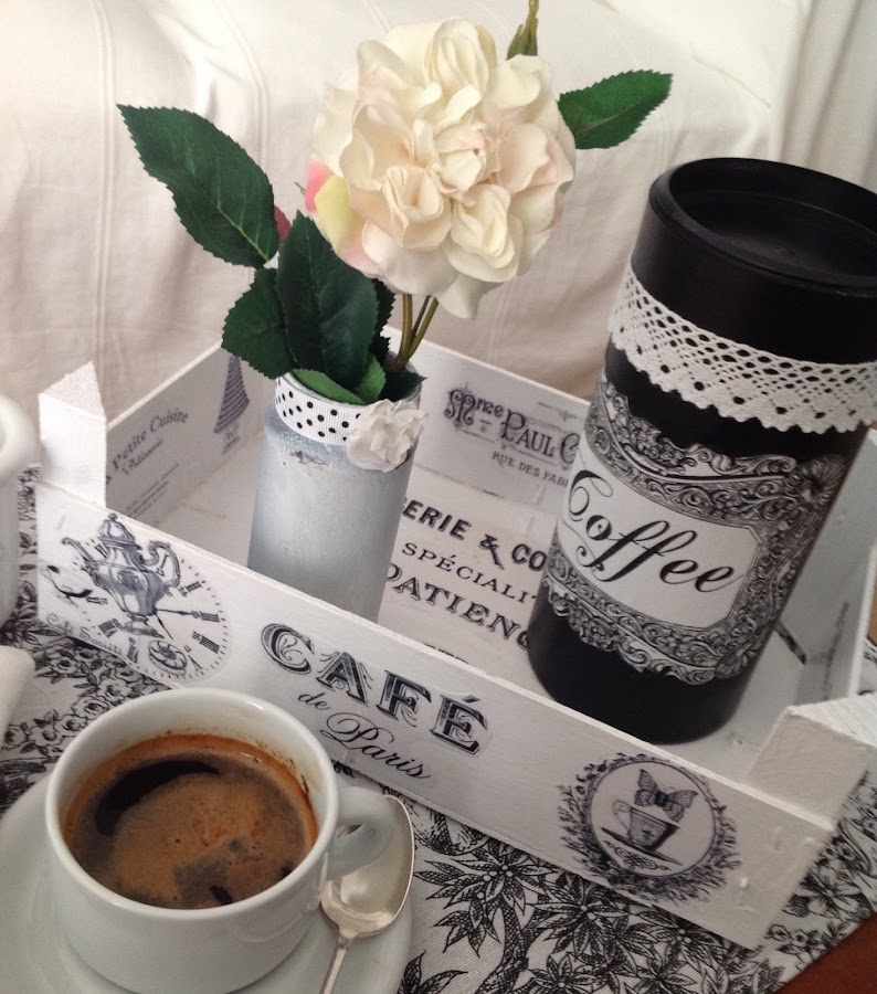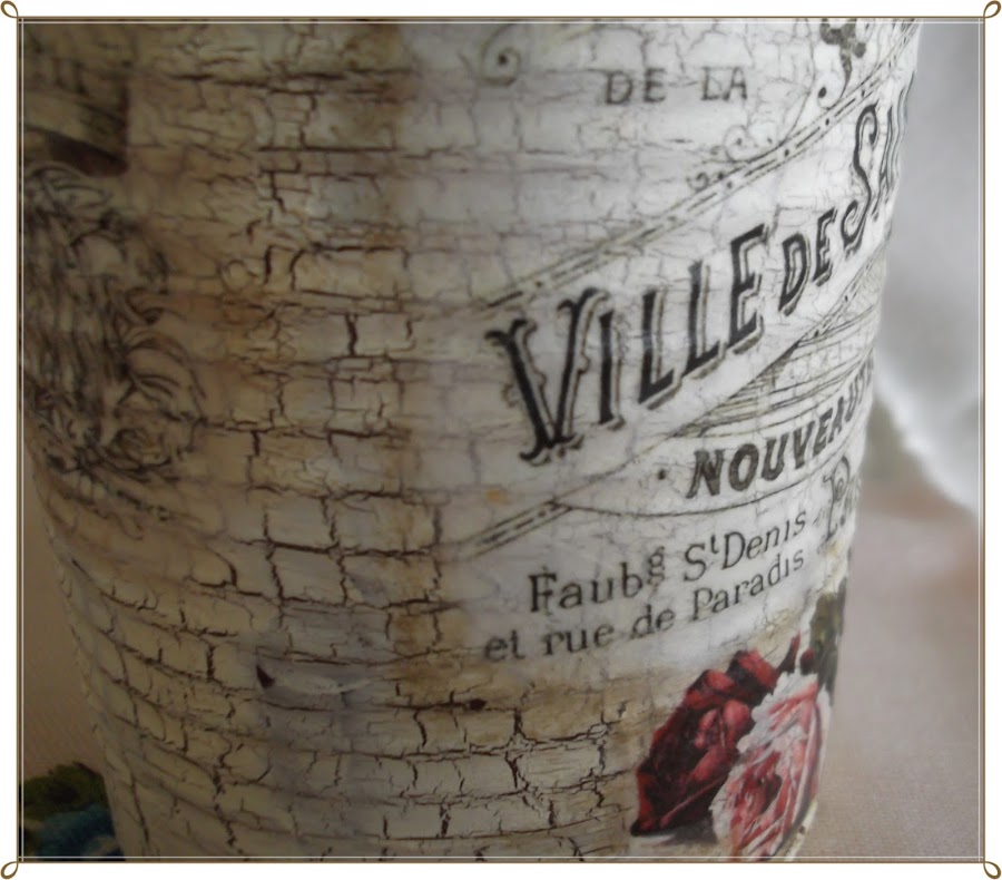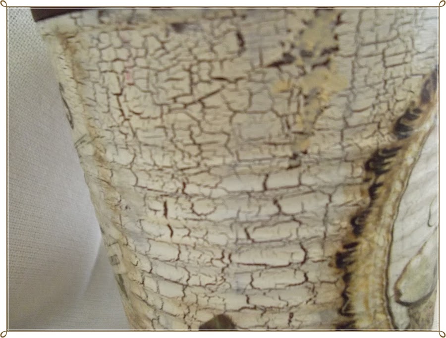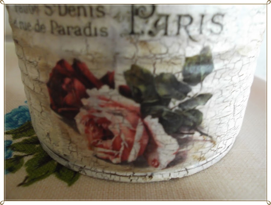 Ya sabéis como se hace el decoupage, recortar el papel, pegar con medium decoupage o cola blanca rebajada con un poco de agua (la cantidad de agua para que la cola sea poco espesa, pero que no chorree, mas o menos una proporción de 4:2)