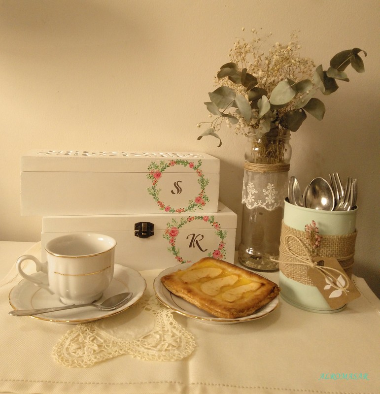 Con una tapa de madera pintada en color burdeos tengo finalizada mi caja, ideal para guardar mis hojas de té natural o mis bolsitas de té ¿no os parece?