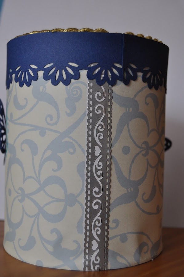 Se me olvidaba, para tapar la unión del papel base, utilicé una puntilla adhesiva que me regaló Noelia. Gracias preciosa. Ya ves qué bien me vino.