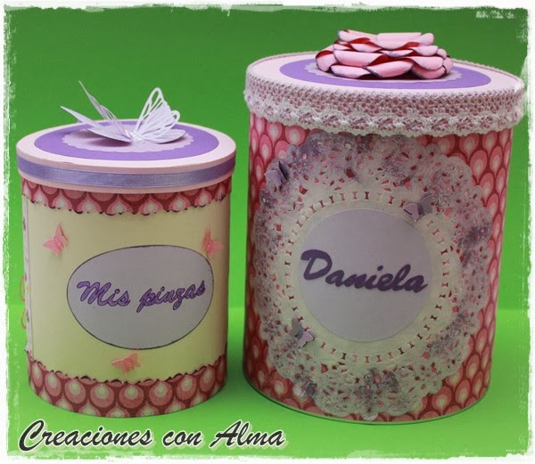 Tengo que deciros que con estas latas he añadido una cosa nueva y es la tapa, desde que empece a hacer latas decoradas era una locura envolver tapas de plástico, así que estas las he hecho yo con cartón.