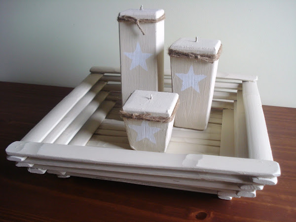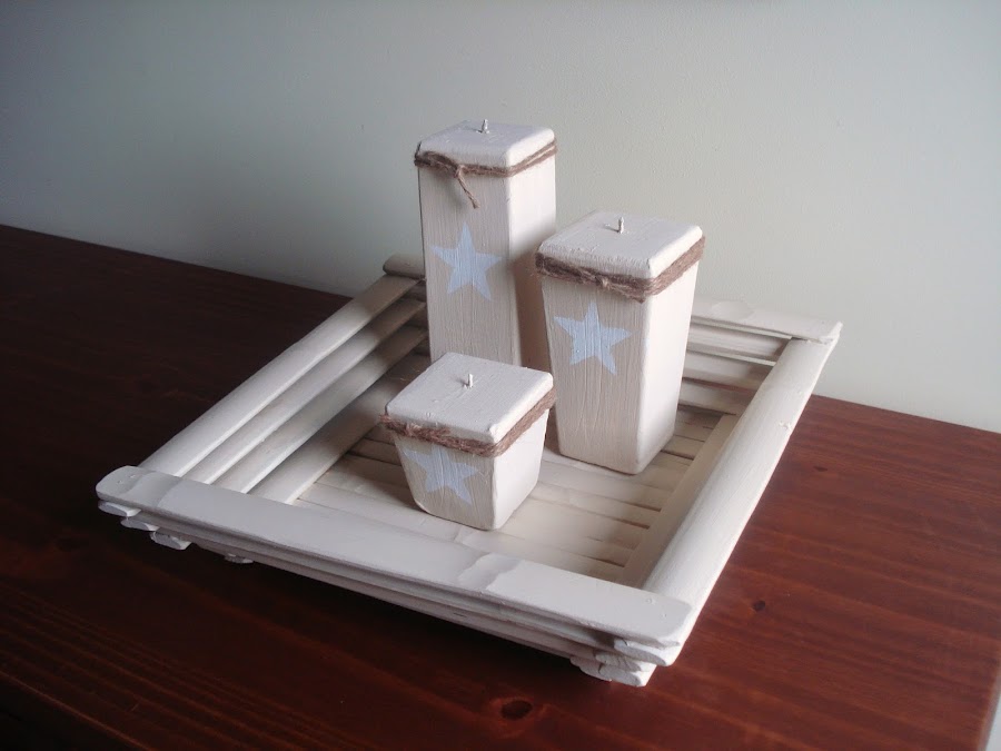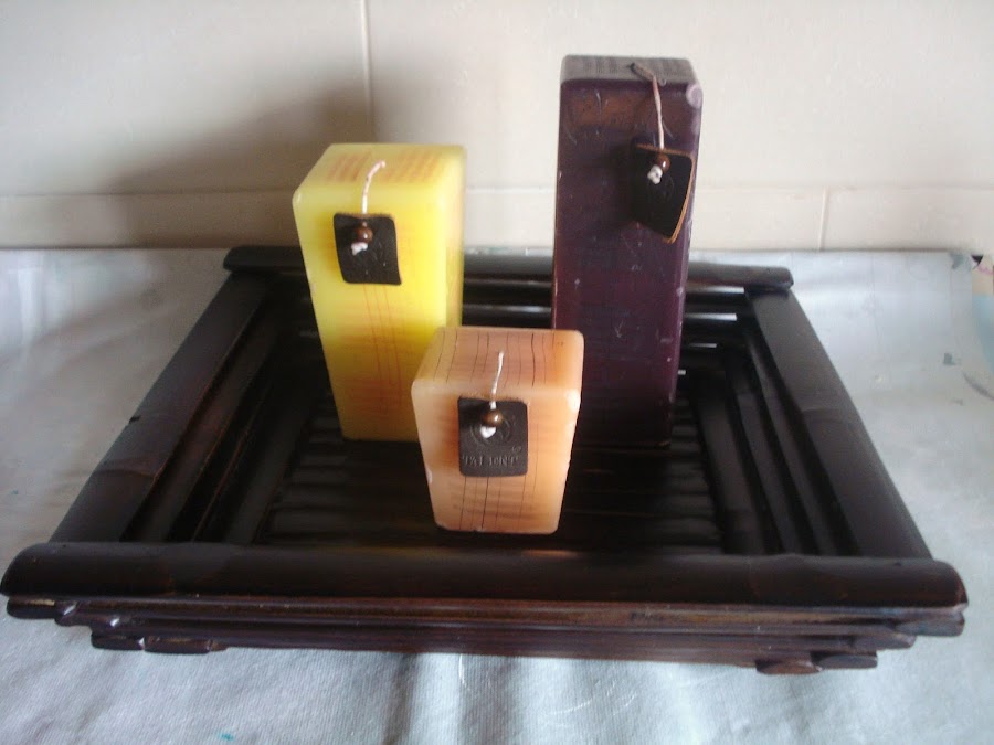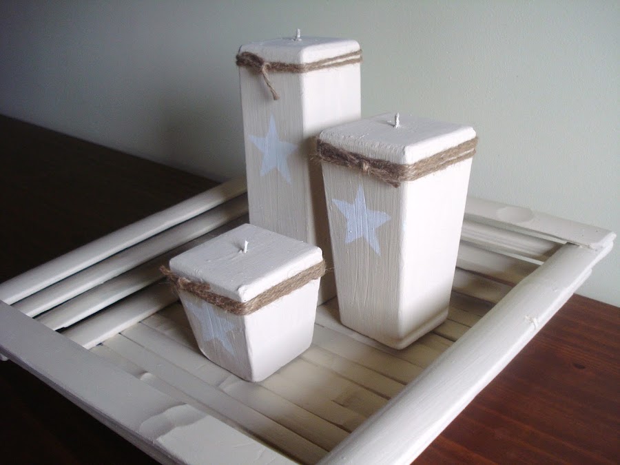 Pero en mi afán de cambio, hasta he pintado las velas porque menudos colores, como son para decorar y no tengo pensado encenderlas, así que brocha va brocha viene, todo del mismo color... Mi marido alucina conmigo.