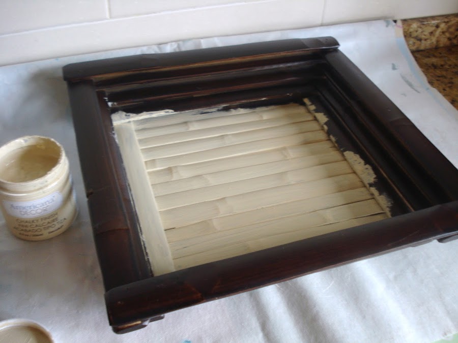 Intenté dar un lavado de cara, pintando el "cesto" con pintura tiza, el color "timeless", no me acaba de convencer, es muy beige, pero toca gastarlo, no sé si se puede rebajar con pintura acrílica blanca, es que no tengo ningún tiza más clarito.