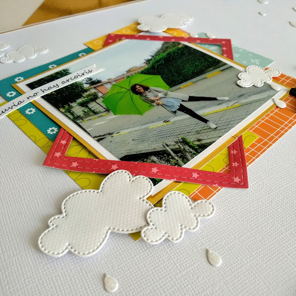 Hace unos días os mostraba un layout a base de tags hecho con resto de papeles de diferentes colecciones de @anitaysumundo de aquellos restos quedaron otros que he usado para enmarcar la foto de esta otra página. El troquel de nubes es de @laparejacreativa