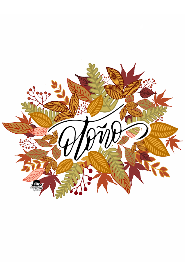 Encima de todo esto, el texto a lettering Otoño, que he recortado y pegado.