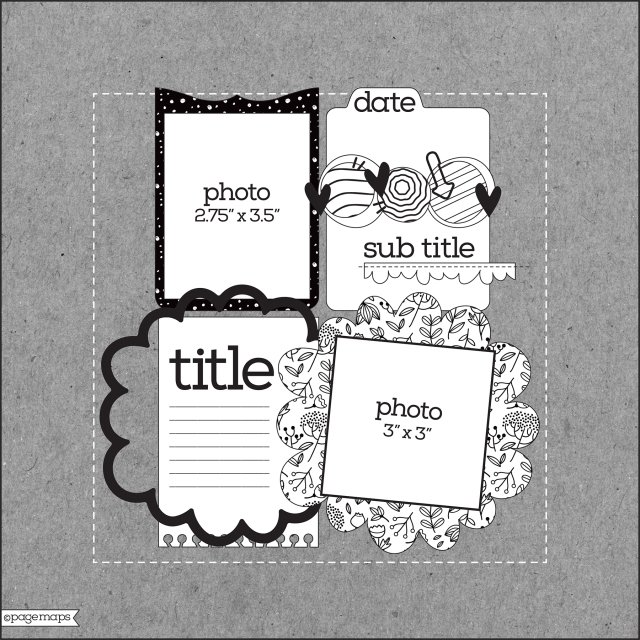 En esta ocasión se nos plantea dividir nuestra página en cuatro espacios iguales, adquiriendo especial interés la parte central de la página donde se concentran los elementos que componen esta plantilla, incluidas dos fotografías, iguales o de diferentes tamaños y que seguro nos dan la posibilidad de hacer un layout muy completo, que para eso, tenemos ya experiencia.