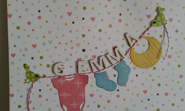 A la part de dalt aquesta roba estesa que vaig aprofitar per posar-hi el seu nom. Les lletres son de fusta i embossades de color blanc.