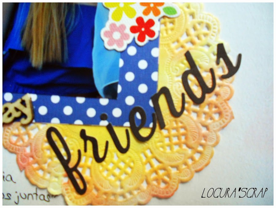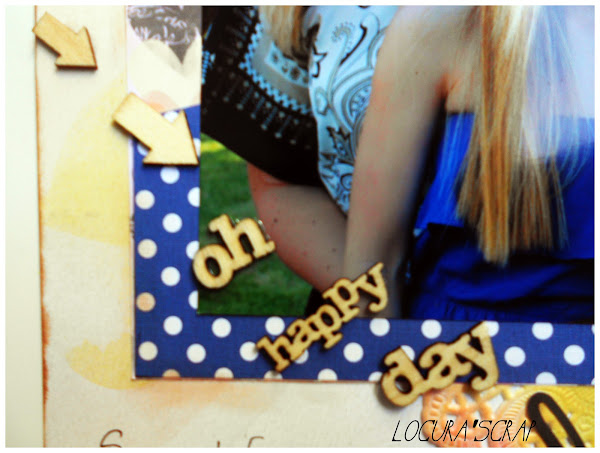 Y como veis hemos utilizado un poquito de todo: flechitas ,corazones y frases de Studio Calico, trozitos de papel, una blonda entintada, un trozo de washi de la colección triquiñuelas de Escrap, un poquito de hilo para hacer un corazón, un sellito de una cámara, y ademas una tarjetita con una frase de Mr Wonderful.