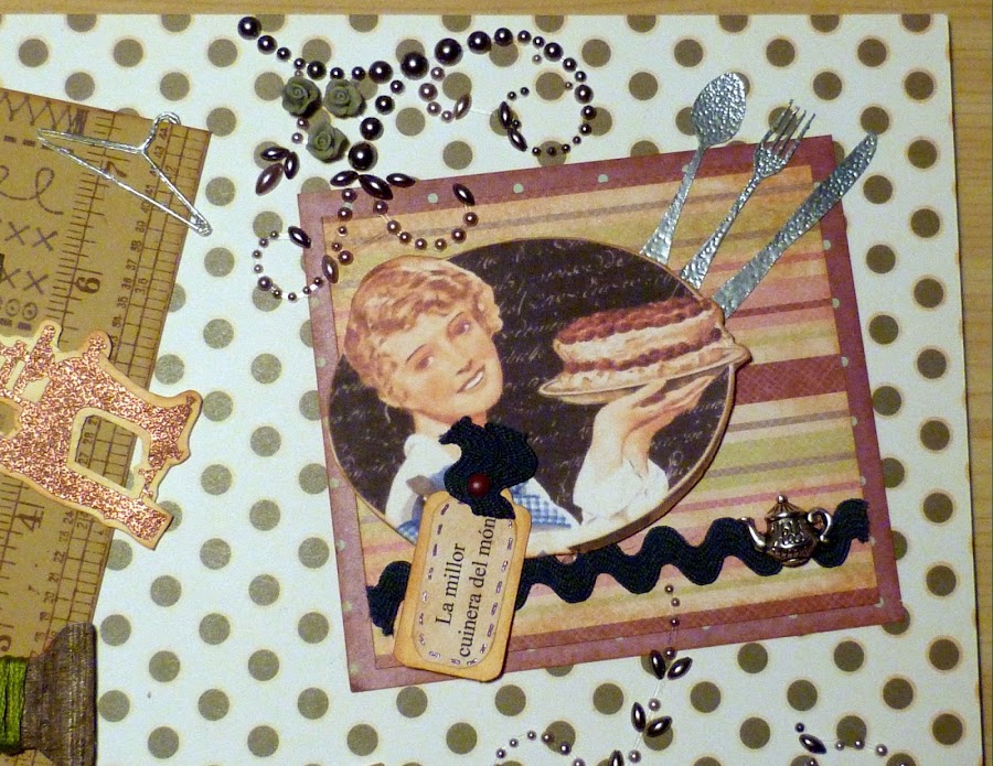 Yo por lo menos lo hice con mucha ilusión, me gustó el resultado. Al principio dudé en combinar cosas de cocina y costura pero al final creo que conseguí una lámina acertada.