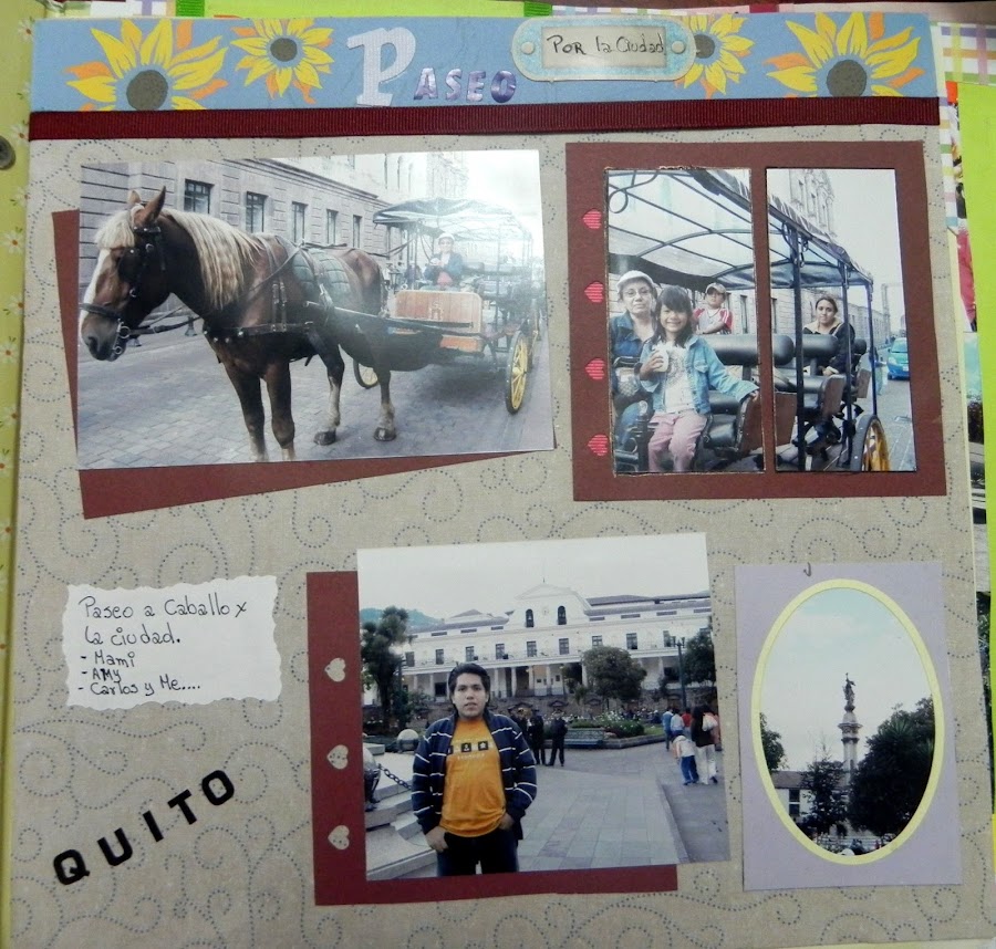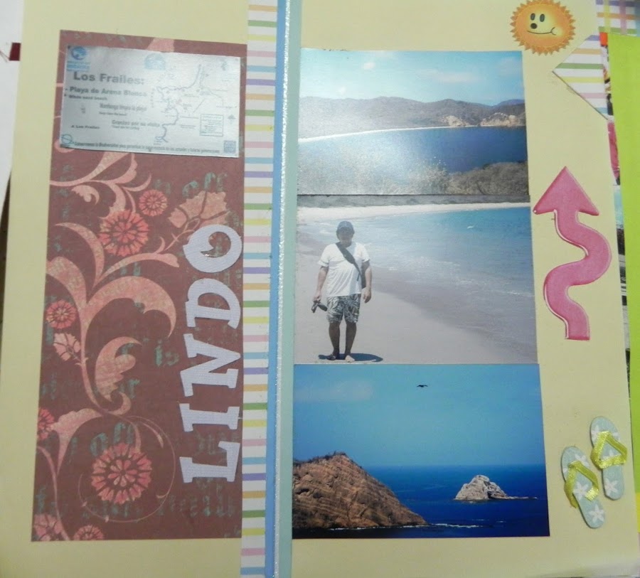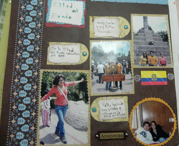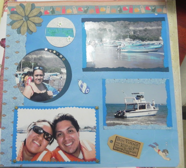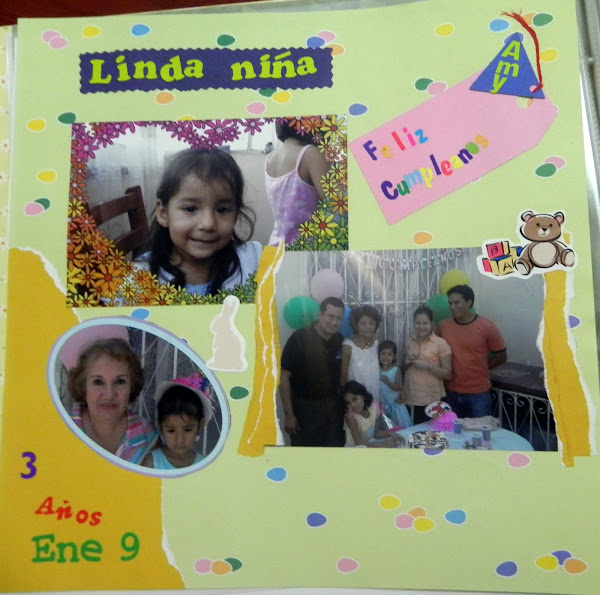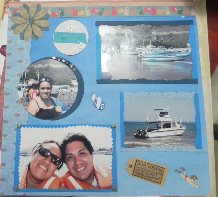 En mi caso también me recordó que si bien es cierto las herramientas nos facilitan el crear una pagina de Scrap el no tenerlas no debe ser un limite para nuestra imaginación. En estas paginas que les voy a enseñar mi principal material de Scrap es papel decorado, tijeras decorativas, stickers y figuras impresas. Y cuando le di una ojeada al álbum pues me pareció simplemente HERMOSO.... porque? porque guardan mis recuerdos!!!! porque de eso se trata el Scrapbook, de contar una historia de una manera artísticas, de preservar un recuerdo en forma de arte.