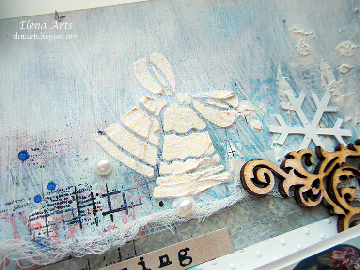 He creado muchas capas con diferentes técnicas de Mixed Media aunque la idea era hacer algo sencillo y con muy pocos elementos, pero al final te animas, pierdes la noción del tiempo... y sin darte cuenta tienes un fondo difícil y lleno de detalles. A vosotras también os pasa???