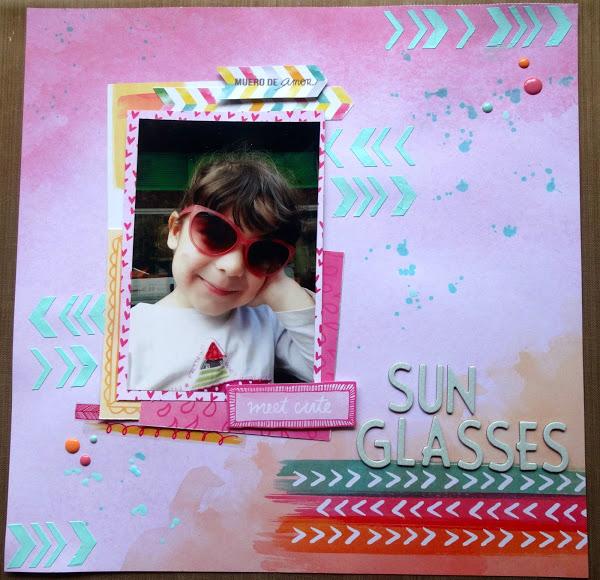 Para el resto del Layout he usado trozos de papeles, die cuts, pegatinas, un sellito de Lora Bailora, unos enamel y un Abc de chipboard.