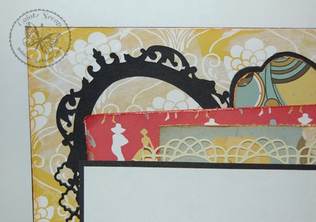El marco negro es un recorte de la Silhouette Cameo. Encima de varias capas de papel se puede apreciar el troquelado Dizzy-Border de Die-namics.