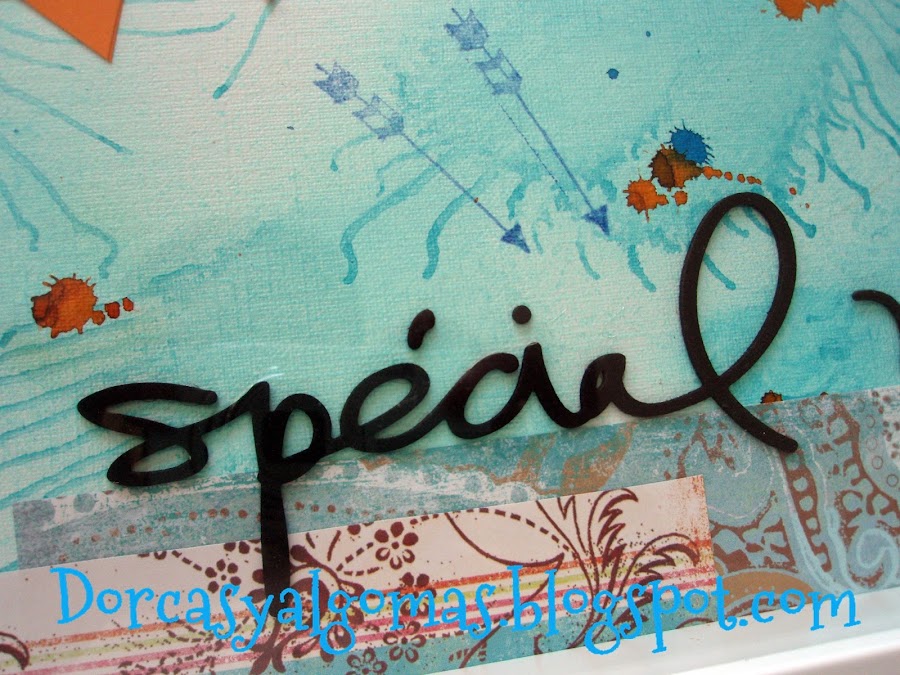 Lo realicé a partir de una plantilla. Seguir una plantilla a la hora de hacer composiciones de scrap facilita las cosas a la hora de colocar los distintos elementos, pero por otro lado limita un poco porque hay que seguirla. No es necesario que sea al pie de la letra, pero si que la colocación de los elementos quede como nos muestra la plantilla.