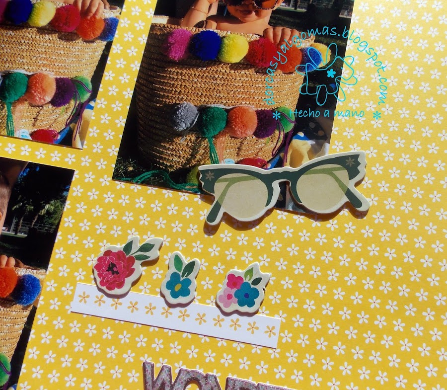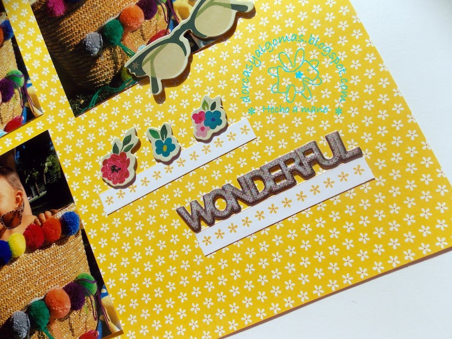 Continúo con la serie de Layouts para mi nieta. En esta ocasión se titula "Wonderful" y está realizado con unas fotos muy simpáticas de mi nieta dentro del capazo de la playa.