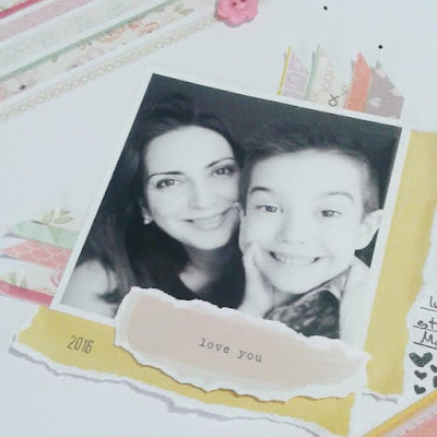 A finales de septiembre fue el santo de mis migueles y a mi hijo le preparé un layout con la colección de Pink Paislee Take me away, para regalárselo con una fotito de él y mia tomada en Junio, en momento muy delicado y triste para la familia y que el me ayudo mucho a superar.
