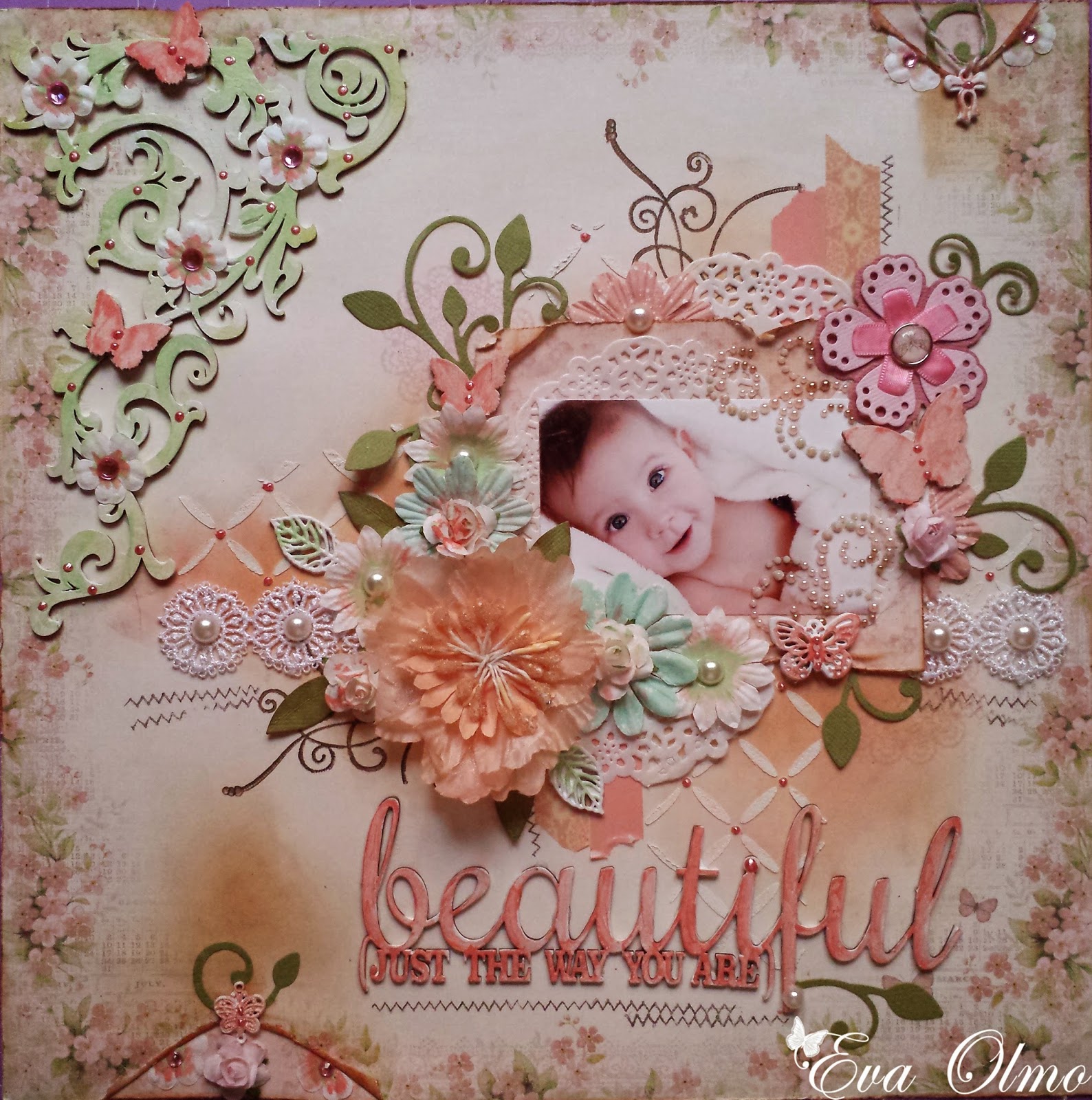 Eva es una escritora de cuentos y a la vez ilustradora de los mismos y como ella misma nos comenta, el descubrimiento del scrap sirvió para fusionar estas dos pasiones. Su estilo lo define como "shabby chic vintage" y no hay momento en su vida que no documente "scrapeándolo".