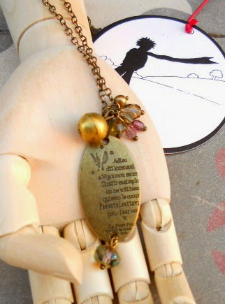 no se ve bien sino con el corazón, lo esencial es invisible a los ojos"Pulsera y colgantes de metal con abalorios de piedras y cristal.