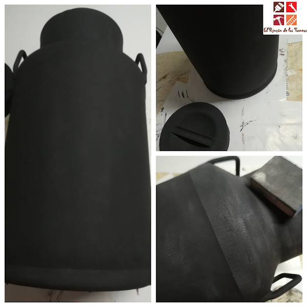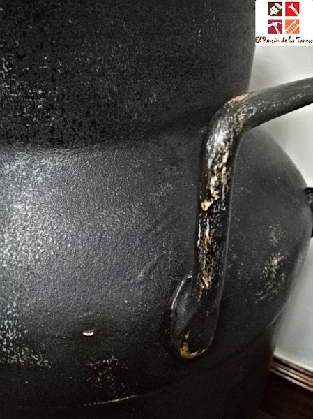 Ese mismo efecto se hace evidente en el tono negro de la lechera y en las zonas lijadas, con el betún le da un aspecto vintage muy bonito.