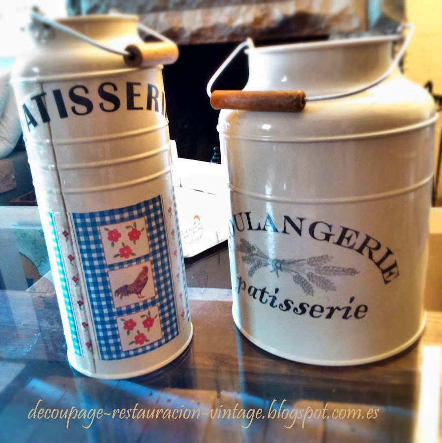 Lecheras de Ikea con técnica tránsfer y decoupage.