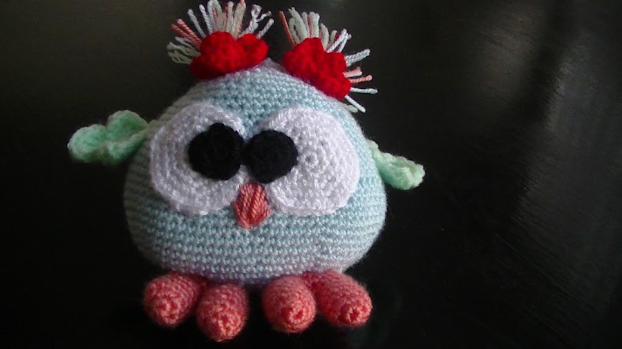 ESTE ES OTRO QUE HICE POR ENCARGO Y YA FUE ENTREGADO, ESPERO LES GUSTE, NO PONGO LAS INDICACIONES PORQUE NO LAS RECUERDO, FUI HACIÉNDOLO Y NO ANOTE, PERO NO ES TAN DIFÍCIL LO MAS COMPLICADO SERIA LAS PATAS Y LAS ALAS, PRONTO PUBLICARE OTRO AMIGURUMI, TENGO MUCHOS HECHOS, SIN PUBLICAR, HASTA PRONTO,Y DEJEN ALGÚN COMENTARIO.