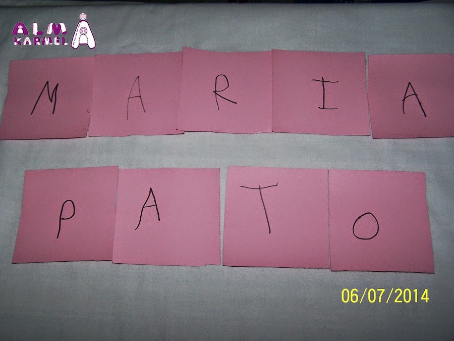 De momento estamos repasando palabras que ya han escrito en el cole, como su nombre, o en este caso "PATO".