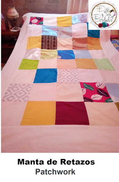 Por otro lado, estuve ocupada seleccionando los retazos de telas que me sobraron, cortándolas en pequeños cuadros, con diferentes tejidos y colores, para armar una mantita, utilizando la técnica de costura de la unión de varias capas de telas, llamada patchwork.