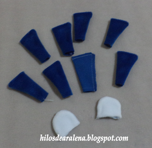 Cosemos cada pieza enfrentando los derechos y damos vuelta.