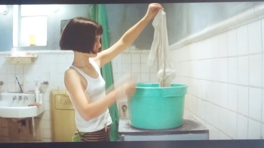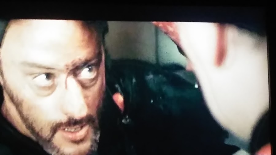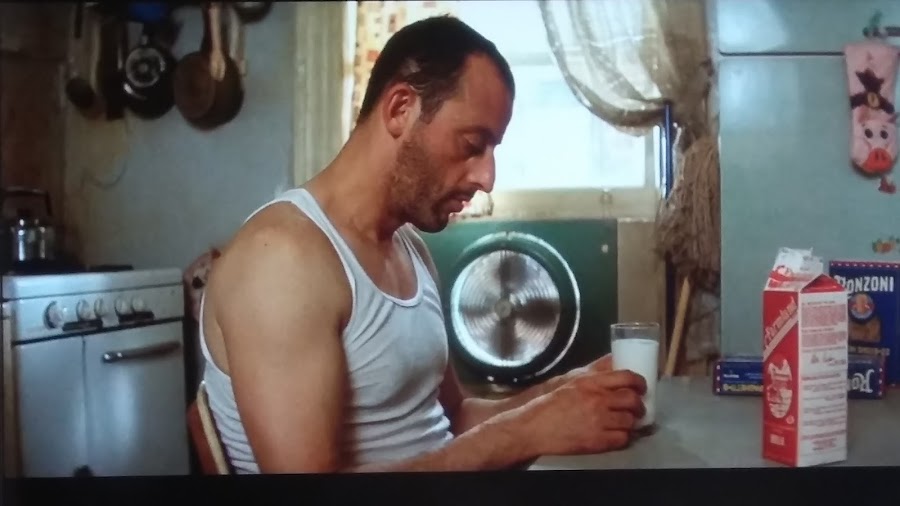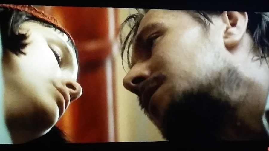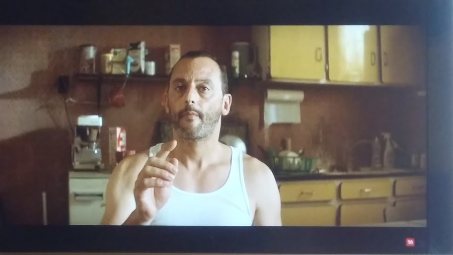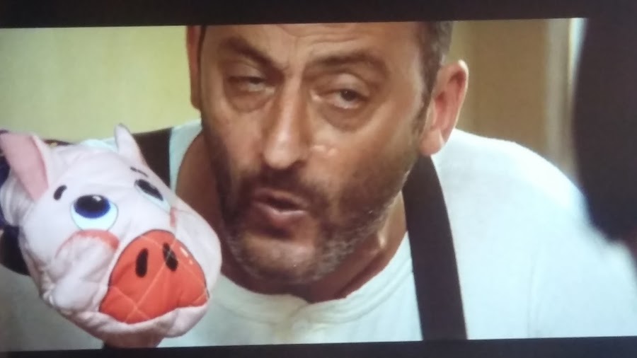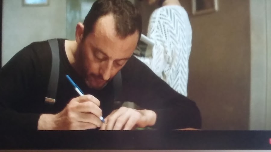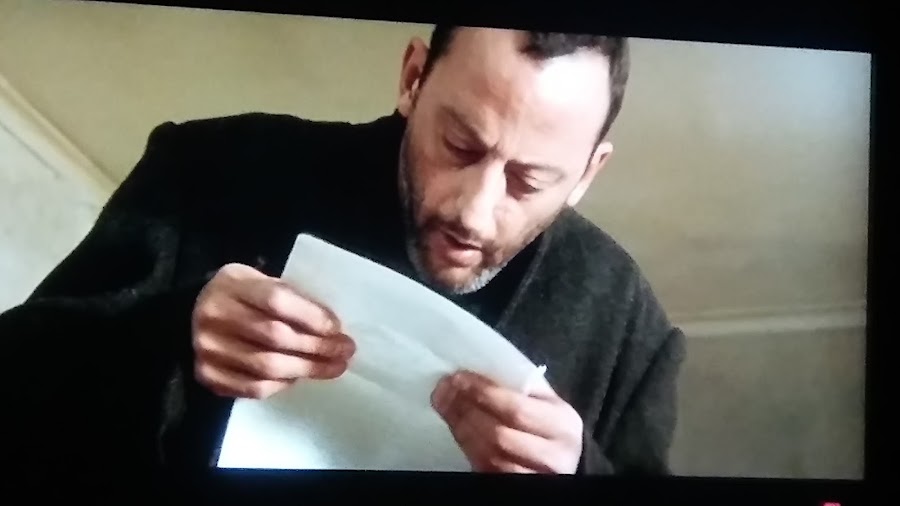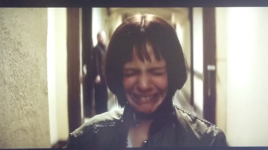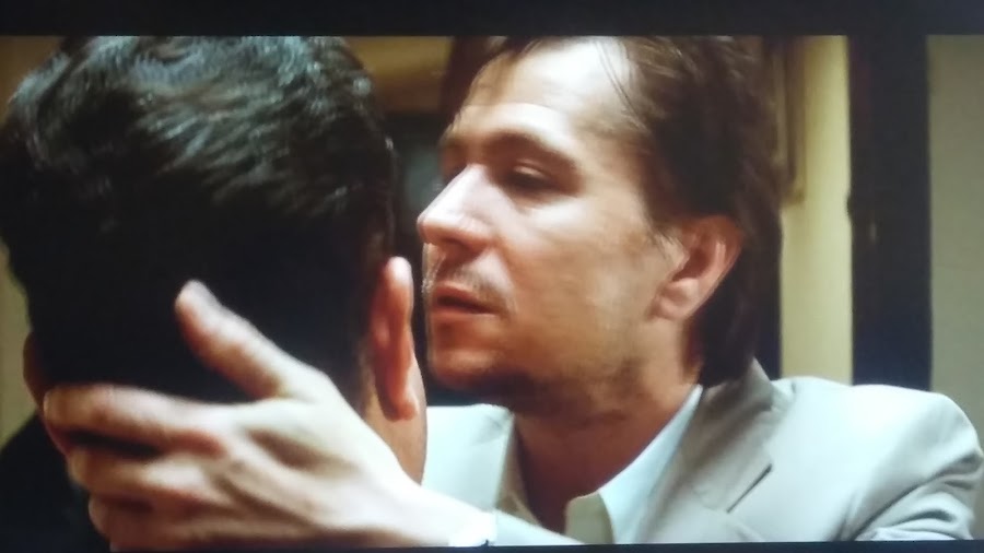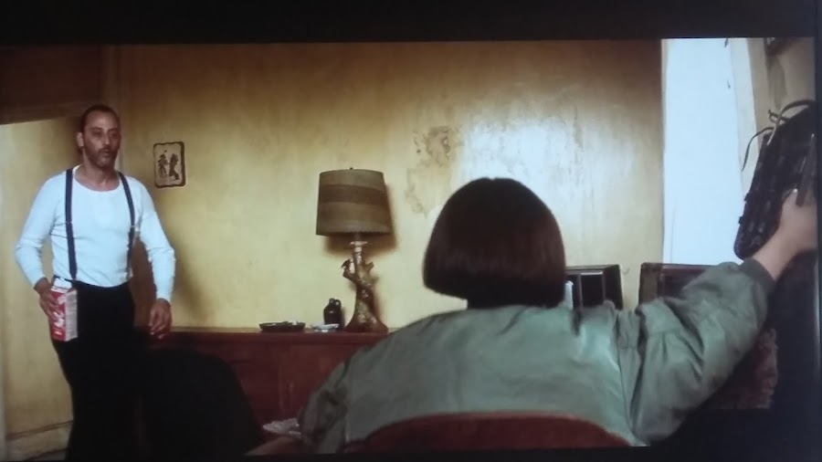 (el actor que hace de padre de Mathilda realmente se ve intimidado por Olmand, ya que no sabe que le va a oler, pues no sale en el guión y esto le incomoda, de ahí su cara de malestar que fue genial para esta escena)