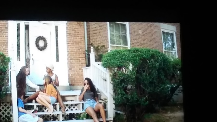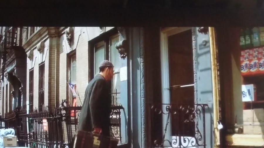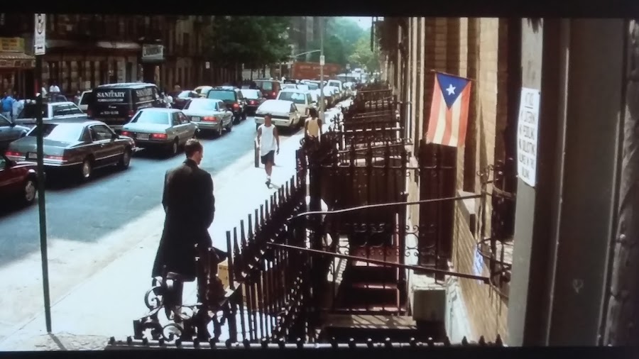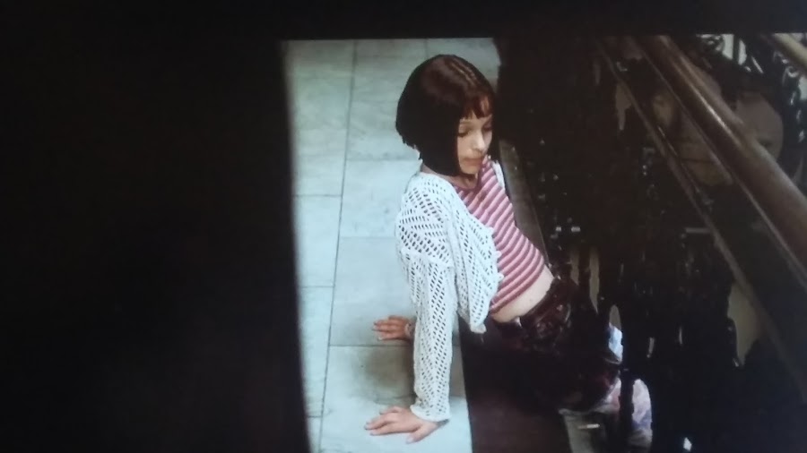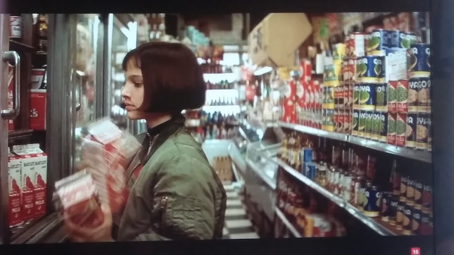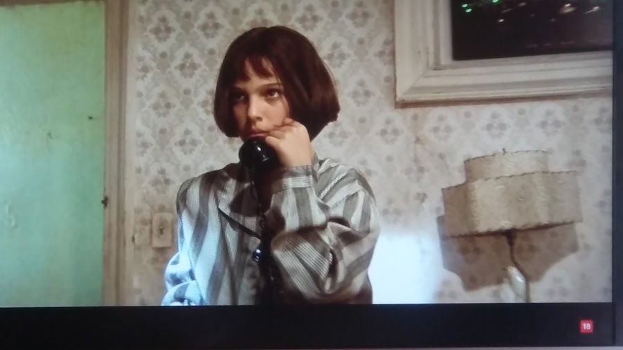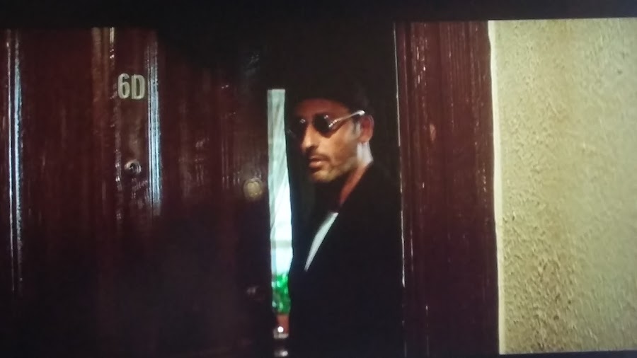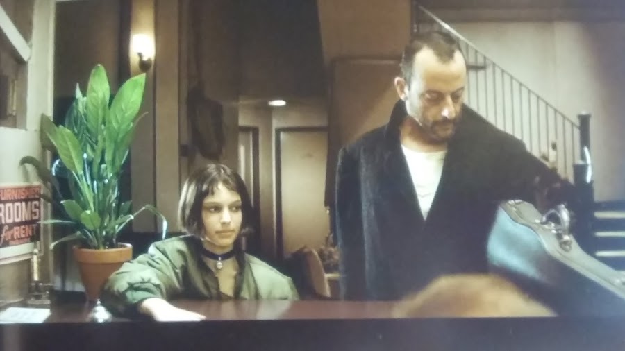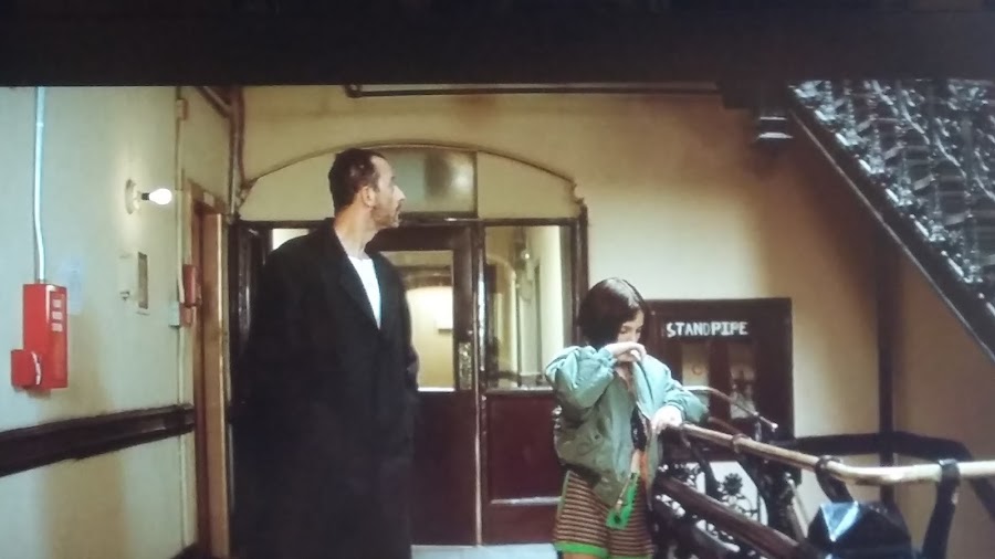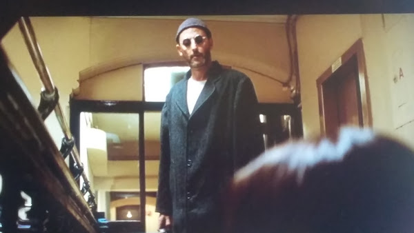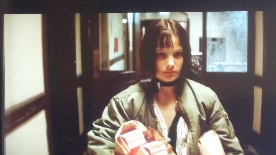 Mathilda su vecinita está fumando un cigarrillo en el rellano de la escalera y lo ve llegar