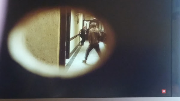 Mathilda llega a casa, ve lo que pasa y pasa de largo la puerta de su casa, es una chica lista