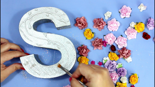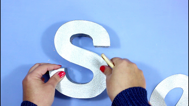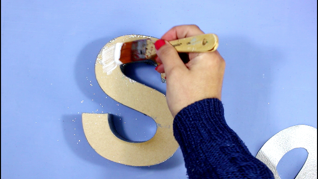 4.-Cubrir con cola blanca la parte delantera y trasera de la letra para poder pegar el papel