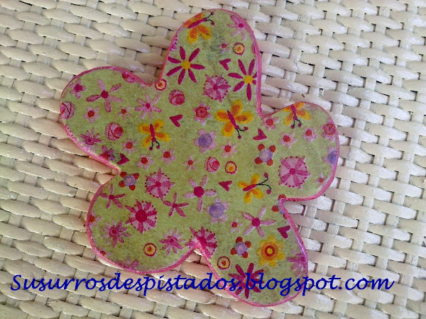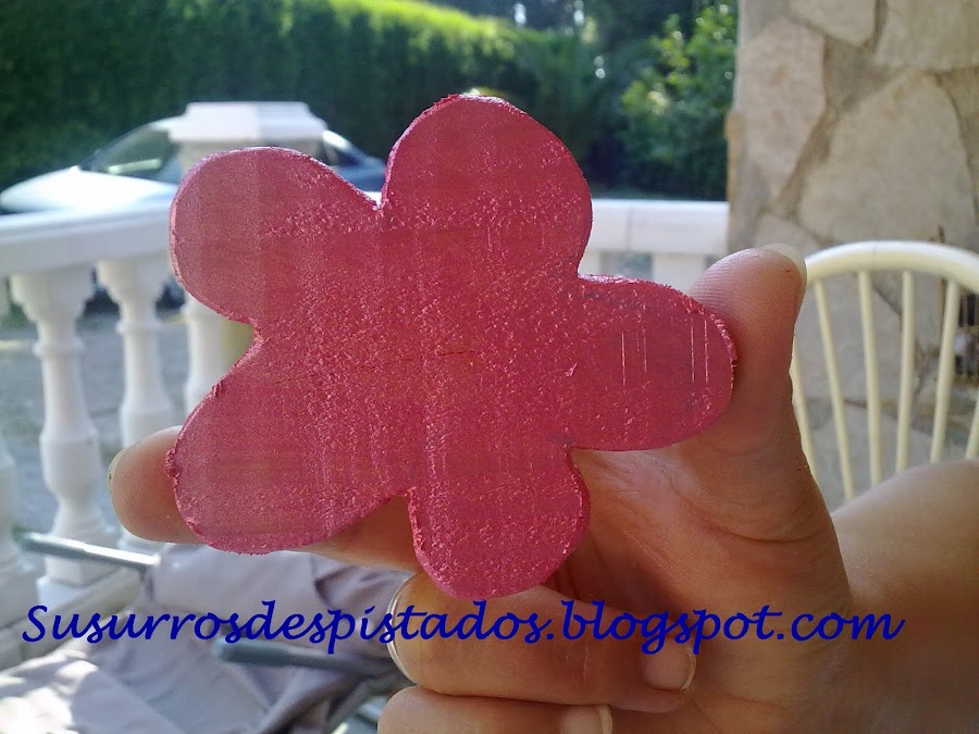La florecita la hemos pintado y también le hemos pegado servi, para que así resalte sobre el fondo liso