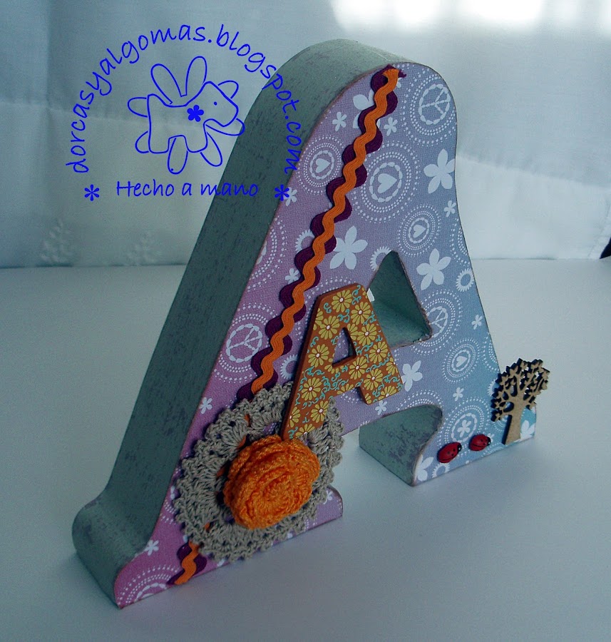 Os muestro una letra de madera decorada , se trata de la letra para mi nieta Alejandra.