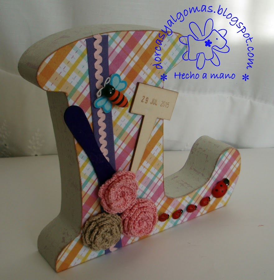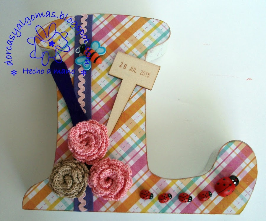 Sigo con la decoración de letras de madera, que tanto me gustan. en esta ocasión he decorado la letra "L" para mi sobrina Liliana.